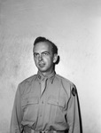 Captain Robert F. Snakard, an intelligence officer with a fighter wing of the 8th Air Force, was billeted in a British home, a local banker in a small town for a year. All of the officers from his base enjoyed living with the British. Snakard was commissioned in June 1942 while associated with the law firm of Bryan, Stone, Wade & Agerton. He is a graduate of Georgetown University, Washington D.C., and the University of Texas School of Law. He is home visiting his wife, the former Mary Lou Hicks, and his father, F. A. Snakard. He wears his uniform in this half length portrait. Published in the Fort Worth Star-Telegram evening edition, September 11, 1944.