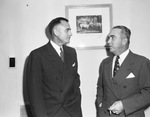 Brad Mills, left, executive secretary of the American Association of Oilwell Drilling Contractors, and C. J. Davidson, chairman of arrangements for the body's fourth annual meeting in Fort Worth, Texas, October 3-4, 1944. They are wearing suits and Mr. Davidson is holding a cigarette. Hanging on the wall behind them is a framed paining of horses.