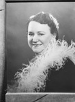 Mrs. E. J. Ward, 53, wife of a horse and mule dealer, died September 7, 1944. Funeral will be held at All Saints Catholic Church. Mrs. Ward lived in Fort Worth for 35 years. She is survived by her husband, and 4 brothers; Jack Lamp, Elroy Lamp, Leo Lamp, and Ira Lamp, and a sister, Mrs. G. S.. Holmberg of Fort Worth. Mrs. Ward wears a feathered scarf in the portrait photograph. Published in the Fort Worth Star-Telegram evening edition, September 8, 1944.