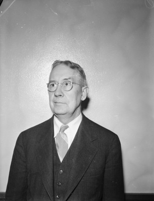 The Panther City Philatelic Society held a meeting to elect their officers. C. C. Webster is the new vice president of the club. He is standing against a wall, dressed in a three piece suit.