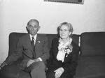 Mr. and Mrs. J. C. Tatum, to celebrate fiftieth wedding anniversary. Left to right, Mr. J.C. Tatum and Mrs. J.C. Tatum. They are sitting on a sofa. He is dressed in a suit. Mrs Tatum is wearing a dress and corsage. Published Fort Worth Star-Telegram Morning Edition September 11, 1944.