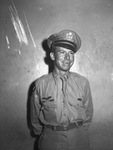 Flier Shot Down Over Balkan Theater Is Home -- Flier and First Lieutenant (Lt.) Charles Britton, Junior (Jr.), son of Mr. and Mrs. Charles Britton, Senior, of 1912 Evans, shot down June 14 over Yugoslavia with B-17 crew and restored to his base by means still unrevealed, was back in Fort Worth for a short visit before reassignment. He is shown standing against a bare wall, facing front and smiling for the camera. He is wearing uniform. This 27-year-old airman, wearer of the Air Medal with four clusters and the presidential unit citation, is a veteran of heavy bombing operations over the Balkans and was returning from an attack on oil refineries at Budapest when his plane was attacked and set afire by German ME-410s, twin-engine fighters. First Lieutenant Britton, Junior (Jr.) was graduated form Old Central High School and attended Texas Christian University (TCU). Published in The Fort Worth Star-Telegram evening edition, September 12, 1944.