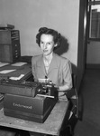 Mrs. Ailleen Richardson, grand jury reporter, is the first female grand jury reporter in the history of Tarrant County. Recommended by Attorney Marvin Brown, Mrs. Richardson sits behind her type writer ready to work. Published in Fort Worth Star-Telegram, morning edition, September 15, 1944.