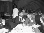National Aeronautic Association. W. B. Matthews of San Antonio, Texas, left, and M. D. Fanning of Lubbock, Texas, are discussing organization methods at the NAA Texas chapters conference. They are both wearing suits with ties and sitting at the dining table. Published in Fort Worth Star-Telegram, evening edition, September 15, 1944.