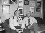Governor Robert S. Kerr of Oklahoma and W. L. Stewart, right, are having a friendly chat. Both former oil operations affiliates are siting on a couch in an office side by side. Published in Fort Worth Star-Telegram, morning edition, September 16, 1944.