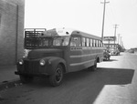 Interior and Exterior shots of White Settlement school bus, which was approved so that children in distant neighborhoods could have a way to school. The bus is parked alongside a curb. Published Fort Worth Star-Telegram Morning Edition September 17, 1944.