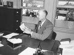 U. S. Constitution Quiz Contest. Assistant Superintendent of Schools W.A. Meacham shown examing one of the registration forms for the quiz contest to be held in senior high schools of Fort Worth and Tarrant County. Published Fort Worth Star-Telegram Morning Edition October 2, 1944.