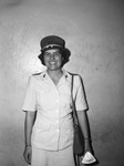 Lieutenant Jane Lynn has been assigned as mess officer at Eagle Mountain Lake Marine Air Station. She is the first woman marine assigned to the station. Lieutenant Lynn is a home economics expert and a Virginian schooled in southern cooking. She is a graduate of Madison College at Harrisburg, Virginia. Before entering the service, she was a home economist with the Department of Agriculture. Lieutenant Lynn is standing against a wall, wearing her military uniform and a purse over her shoulder.