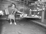 Teaching birds to sing has long been the profitable hobby of Mrs. Joe Summerlin of Burleson, Texas. A few notes from her battered accordion and the hundreds of canaries in her aviary line up to warble to her accompaniment. When she is assured of their singing ability, she ships them to a dealer in New York or Philadelphia and thus ends her close relationship with them that begins with her careful selection of mating stock. Mrs. Summerlin can be see with her accordion and petting the canaries.