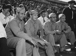 Football Texas Christian University Sports and Physical Activity Alliance Foundation spectators. Left to right. Lieutenant Dan Strassberg, Lieutenant H. B. Lewis, Lieutenant. A. E. Maconi and Lieutenant Jas. A. Nelson. All Lieutenants are sitting side by side with their military uniforms on watching the game. Published in Fort Worth Star-Telegram.