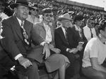 Football Texas Christian University Sports and Physical Activity Alliance Foundation spectators. Mr. and Mrs Chester B Collins and Mr. and Mrs. R. R. Wilson. Both couples, siting next to each other, are watching the game. The men are wearing a suit and tie, and have on a pair of glasses, while the wives are wearing skirt suits with a rounded hat. Published in Fort Worth Star-Telegram.