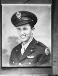 First Lieutenant William R. Stockard Junior of Frost, Texas, awarded Air Medal for his participation in the invasion of France. He piloted a C-47 and flew in the first wave of 900 planes and gliders of the ninth Troop Carrier Command. He is shown smiling in his pilot uniform that is adorned with badges.