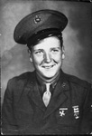 Marine Private First Class, Billy Joe Trimmier, son of Mr. and Mrs. John Trimmier, from Stamford, Texas, has been honored with the military recognition of Purple heart. This is a copy of black and white portrait of Marine Pfc Trimmier, he appears to be wearing his uniform.