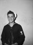 George E. Hall, 19, Motor Machinist's Mate third class, stationed on a PT tender based at Baltimore, Md., recently visited his parents Mr. & Mrs. C.E. Hall. In the picture he appears to be standing in front of a wall, wearing his uniform.