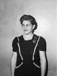 First recruit in Fort Worth for duty at the New Orleans Port of Embarkation with the WAC, Annie Ruth Smith will leave Friday for six weeks training at Fort Oglethorpe. then she will report to New Orleans for WAC duty there. In the picture she appears to be wearing eyeglasses, a dress, a pearl necklace, and earrings. She is standing in front of a wall and she is smiling.