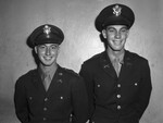 Two Fort Worth men who have been friends since they were fraternity brothers at Paschal High School recently graduated together from the Infantry OCS at Fort Benning Ga. They were also classmates at Texas A & M College, are Second Lts. Arthur Fred Pankey and James E. Rasmussen. They left Oct. 13, after a visit here to report to Camp Van Dorn, Mississippi. They entered active service in the fall of 1942. In the picture you can see both men standing in front of a wall, wearing their uniforms and smiling.