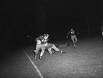 Football Paschal-Riverside action shots. Guy Proctor, Panther quarterback, gains nine yards and a first down in the first quarter of Saturday night's game at Farrington Field. Making the tackle on the Paschal 23 is Orien Browning of Amon Carter Riverside. The Panthers won, 14-12. Published in The Fort Worth Star-Telegram morning edition, October 15, 1944.