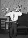 Clyde Whitlock's work also is his hobby--music. The man whoses 35th anniversary as a professional musician in Fort Worth will be celebrated Friday evening by Fort Worth friends at Colonial Country Club says he "never got very far in looking for a hobby, because I didn't have time for one anyway. His day begins at 9 a.m. and end half past midnight. In addition to being a professional musician, he is also the music critic columnist for the Star-Telegram. Clyde Whitlock, conducting with a baton in his right hand and a handkerchief in his left hand, held up to his left temple. Upright piano and a table with books (possibly sheet music) in the background. Published in The Fort Worth Star-Telegram Morning Edition October 20, 1944.