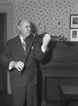 Clyde Whitlock's work also is his hobby--music. The man whoses 35th anniversary as a professional musician in Fort Worth will be celebrated Friday evening by Fort Worth friends at Colonial Country Club says he "never got very far in looking for a hobby, because I didn't have time for one anyway. His day begins at 9 a.m. and end half past midnight. In addition to being a professional musician, he is also the music critic columnist for the Star-Telegram. Clyde Whitlock, professional musician, is shown playing a violin. Published in The Fort Worth Star-Telegram Morning Edition October 20, 1944.