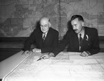 Thomas J. Fountain, left, staff engineer of Fort Worth's city water department and C. M. Thelin, assistant city engineer. They are looking at an incomplete map of the city's water facilities, which they will have to bring up to date. Published in the Fort Worth Star-Telegram morning edition, November 12, 1944.