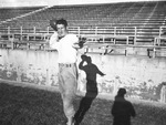 Texas Christian University Football. John Hadaway, TCU's no. 1 tosser, is out on the field perfecting his aerials for use against the Aggies in the Cotton Bowl on New Years Day. He will start in the tailback slot for the Frogs. Published in the Fort Worth Star-Telegram morning edition, December 27, 1944.