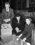 Goodfellows. Left to right, W. D. Clay, Mrs. Arch Parnum, Lake Worth, and Mrs. Edward H. Ailes. A man and two women are packing bags of assorted nuts for Goodfellow baskets.