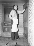Goodfellows. Weldon Basinger, left, Star-Telegram carrier-salesman, leaving Goodfellow bundle. Mr. Basinger knocking on the door of a home on the Goodfellow list as he prepares to bring Christmas happiness.
