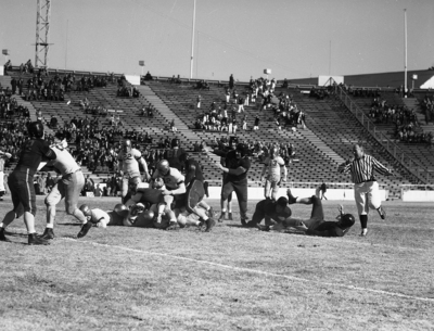 The Boston College Eagles and the Clemson Tigers are facing off in the 1940 Cotton Bowl. Action play.