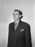 The preliminary tournaments are closed and eighteen representative districts will be competing in the Golden Gloves State Tournament. Cecil Finfrock, of Waco, Texas, sponsored a Central Texas District Tournament. His entries for the state tournament are Ray Snokhams (featherweight), Lloyd Densman (featherweight), Jim Beard (lightweight), Otto Stasci (welterweight), Alvin Leuck (middleweight), and George Gaynor (light-heavyweight). Mr. Finfrock is the also the director of the Waco Boys Club. He is shown standing against a wall, dressed in a double breasted suit.