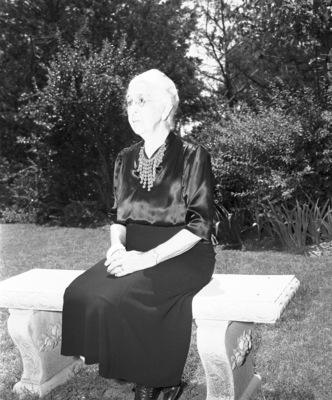Mrs. M. R. Sanguinet sitting in her garden in Arlington Heights, 06/01/1940