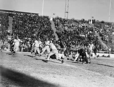 The Boston College Eagles and the Clemson Tigers are facing off in the 1940 Cotton Bowl. Action play.