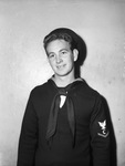 Frank O. Clements is a Ship's Cook, Third Class in the United States Navy. He is in Fort Worth, Texas to visit his mother, Mrs. Frances Clements, 3501 Gordon Avenue, Fort Worth, Texas. Petty Officer Clements is stationed in the Mojave Desert at Inyokern, California. He is shown standing against a wall, wearing a Navy uniform with a Navy patch on his upper left sleeve. Published in the Fort Worth Star-Telegram morning edition, February 7, 1945.