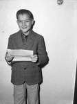 FDD's Birthday Is On January 30 Same as FDR's -- Franklin Delano Deckich, 11-year-old son of Mr. and Mrs. Sam Deckich, celebrated his 11th birthday Tuesday. He is shown standing, smiling, wearing a suit and holding a piece of paper. Franklin shares his birthday and name with the President of the United States, Franklin Delano Roosevelt. Franklin Deckich was born at 12:01 a.m. on January 30, 1934, the first baby to be born on that date in Fort Worth, Texas, and the hospital attendants named him after the President. Published in The Fort Worth Star-Telegram morning edition, January 31, 1945.