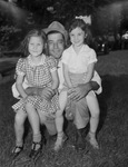 East Texas Hereford Association Tour. Left to right, Elizabeth Pinkston, Albert Pinkston and Shirley Jane Daniels, all cousins seen on the grass. Daniels and Pinkston are seen sitting on Albert's lap.
