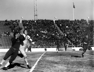 The Boston College Eagles and the Clemson Tigers are facing off in the 1940 Cotton Bowl. Action play.