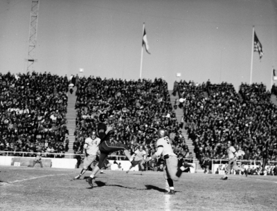 The Boston College Eagles and the Clemson Tigers are facing off in the 1940 Cotton Bowl. Action play.