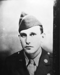 Copy of a portrait photograph of Private First Class Johnny R. Butler Junior. He is an infantryman in the 3rd Army's 90th Division. He was awarded a Purple Heart for his first wound overseas on June 14, 1944. His second wound came on November 10, 1944, when shell fragments hit his right ear, both legs, and fractured his jaw. Private Butler wrote a letter to his wife, Lanelle Woods Butler, of Quitaque, Texas, assuring her that his recovery was progressing smoothly. Private Butler is pictured wearing his military uniform.