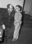 Lieutenant Colonel Burke Brewster is being greeted by his son, Webb Walker Brewster. Colonel Brewster is home on a 45-day leave from the European Theater. He is the head of the United States Army's 36th Division medical service. He is dressed in his military uniform. Webb Walker is wearing a button-up shirt and trousers.