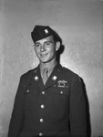 Portrait in uniform of Private First Class (Pfc.) Emmit A. Ingram, who was awarded the Purple Heart with one cluster, the Pacific Theater of Operations ribbon with one battle star and the Arrowhead cluster, and the Philippine Liberation ribbon with two battle stars. He is 19-year old and now visiting his parents, Mr. and Mrs. E. A. Ingram, 4833 Harley. Ingram was in the first wave to land on Leyte and was wounded twice in the battles for the liberation of the Philippines. He enlisted in the Army in May 1943. He was sent to Kalamazoo College, Michigan, for three months under the Army Specialized Training Program (ASTP) program. He served as a scout in a rifle squad. He is a graduate of Arlington Heights High School and attended Texas A. & M. College for two years. Published in The Fort Worth Star-Telegram morning edition, March 30, 1945.