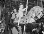 Jeanette Gibson with her mother Mrs. J. L. Gibson, riding the Forest Park Zoo merry-go-round (carousel).