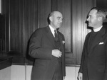 Doctor M. E. Sadler, left, president of local branch of the National Conference of Christians and Jews and Reverend Sherwood S. Clayton discuss plans for the choir concert to be held May 7 as a part of the conference's brotherhood movement. Published in Fort Worth Star-Telegram, evening edition, April 12, 1945.