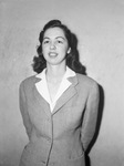 Miss Marjorie Vokel was named president of the "Amairettes," a club recently organized by girl employees of American Airlines. Miss Vokel is standing against a wall with her hands behind her back. She is wearing a collared blouse and a blazer.