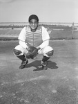 Harry Mullins, Texas Christian University (TCU) baseball catcher, provides much of the Frogs' power at the plate as well as serving as the receiver for the Christian pitchers. Published in Fort Worth Star-Telegram, morning edition, April 22, 1945.