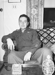 Master Sergeant James Mann is one of five men from Fort Worth, Texas, who are home after being liberated from a German prisoner of war camp. He is shown sitting on a couch in his living room. He is dressed in his military uniform.
