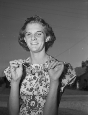 Thomasson, Jean; Students; Dresses; Necklaces; Jewelry; Medals; Awards