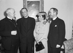 Getting Acquainted. Greeting guests Monday afternoon at St. Matthew's Episcopal Cathedral in Dallas were, left to right, Bishop Harry Tunis Moore; Reverend Doctor A. Avery Mason, recently elected bishop coadjutor of the Diocese of Dallas, who will tour Fort Worth parishes Tuesday; Mrs. Mason and Reverend Sherwood S. Clayton, rector of St. John's Episcopal Church here and a member of the diocesan standing committee. Published Fort Worth Star-Telegram Morning Edition April 24, 1945.
