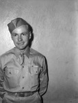 Corporal Chester Johnson, veteran of European Theater Operations. Corp. Johnson has four battle stars for service in North Africa, Sicily, and Italy. Corp. Johnson is waring his military uniform stands with his hands behind his back.