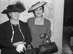 Mrs. Luz Flores Covarrubias and daughter, Miss Clara Flores Covarrubias of Mexico City, Mexico. Miss Covarrubias is a paleontologist in Mexico. She was a guest at Texas Christian University (TCU) of Professor and Mrs. Gayle Scott. Mrs. Covarrubias and her daughter stand next to each other holding their purses.