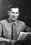 Canyon Airman Reported Killed -- First Lieutenant Donald Hawkins, navigator on a Flying Fortress of the 463rd Bombardment Group in Italy, was killed in action April 15. He had been awarded the Air Medal. His widow the former Elda Gordon, and their son, 3-month-old George Wayne Hawkins, live in Canyon. His parents, Mr. and Mrs. C. A. Hawkins, reside in Panhandle. Lieutenant Hawkins is shown here in his military uniform, holding a paper and smiling. Published in The Fort Worth Star-Telegram morning edition, May 12, 1945.