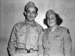 Sergeant Melvin Osier Junior, veteran of 33 months in the Mediterranean area and his sister Sergeant Dorothy Osier, stationed at Buckingham Army Air Forces in Florida. The pair are standing next to each other, smiling. Both are in military uniform.